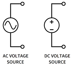 AC Voltage Source An ideal source of Alternating Current (AC) voltage. It produces a voltage that continuously changes polarity, typically in a sinusoidal waveform. This represents the standard form of electricity from wall outlets.