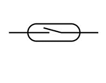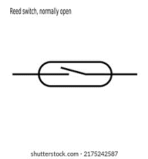 Reed Switch A switch operated by a magnetic field. It consists of two ferromagnetic reeds sealed in a glass tube. When a magnet is brought close, the reeds attract each other and make contact, completing the circuit.