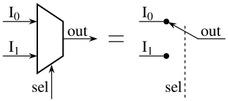 Multiplexer / Mux A combinational logic circuit that selects one of several input signals and forwards the selected input to a single output line. The selection is controlled by a separate set of select lines.