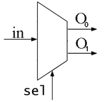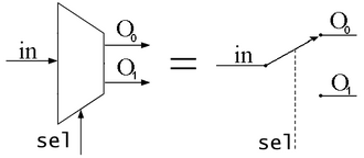 Demultiplexer / Demux A combinational logic circuit that takes a single input signal and routes it to one of several output lines. The selection of which output gets the signal is controlled by a separate set of select lines.