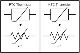 Thermistor (NTC/PTC) A temperature-sensitive resistor. An NTC (Negative Temperature Coefficient) thermistor’s resistance decreases as temperature rises. A PTC (Positive Temperature Coefficient) thermistor’s resistance increases as temperature rises. Used for temperature sensing and current limiting.
