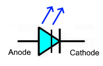 Light Emitting Diode (LED) A diode that emits light when current flows through it in the forward direction. The color of the light depends on the semiconductor material used. Used for indicators, displays, and lighting.