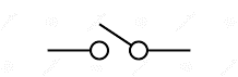 Push Button Switch (N.O.) A momentary switch that is Normally Open. The circuit is open (off) when the button is not pressed. Pressing the button closes the circuit, and it springs back open when released.