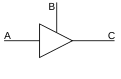 Buffer A digital logic gate that does not perform a logical operation. Its output state is the same as its input state. It is used to amplify a weak signal and provide higher current drive capability.