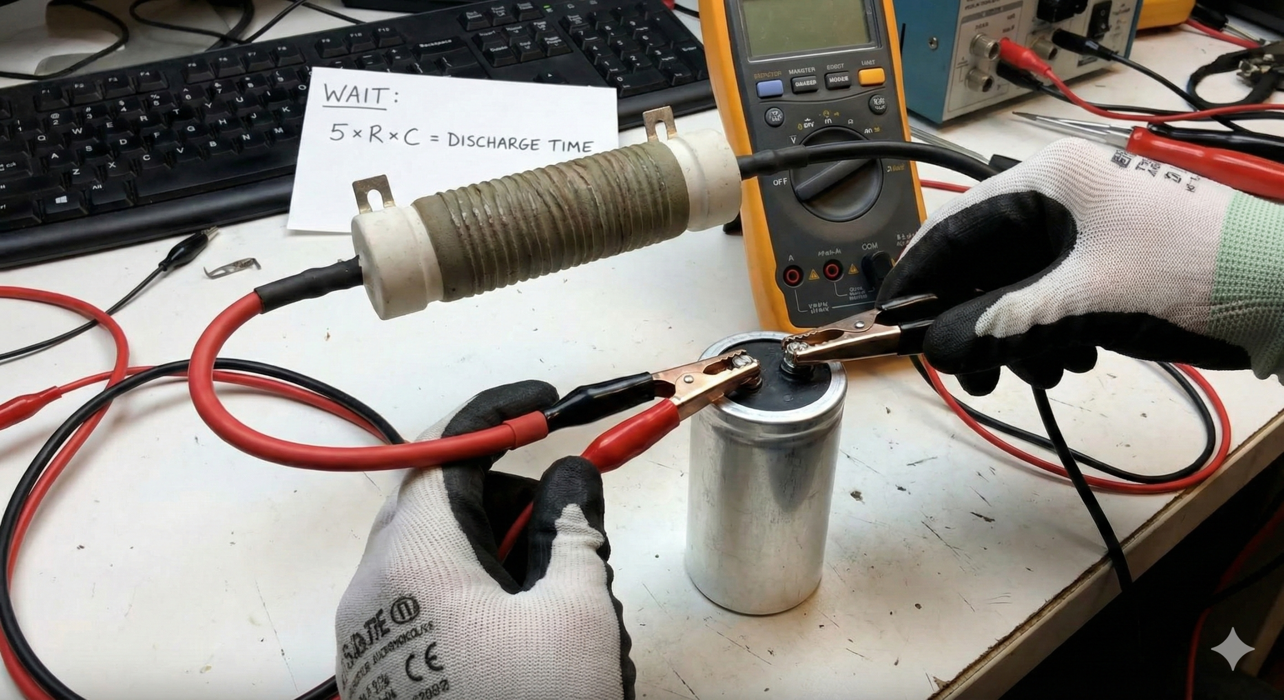 This is the industry-standard method and the one I use for 90% of my work. It involves using a resistor to bridge the capacitor terminals.