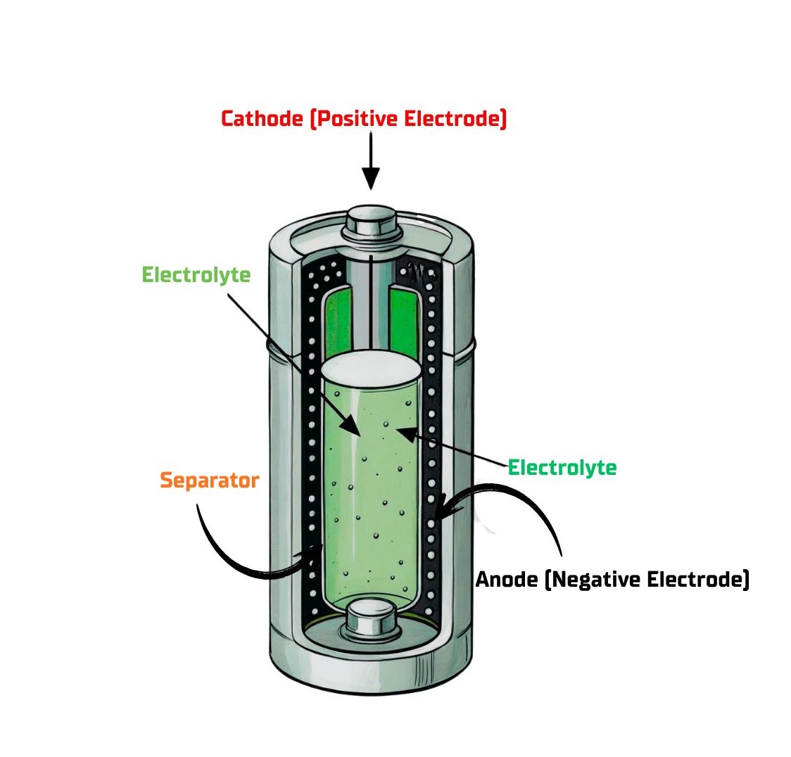 Every battery, regardless of its size or type, is built from a few essential parts that work together: