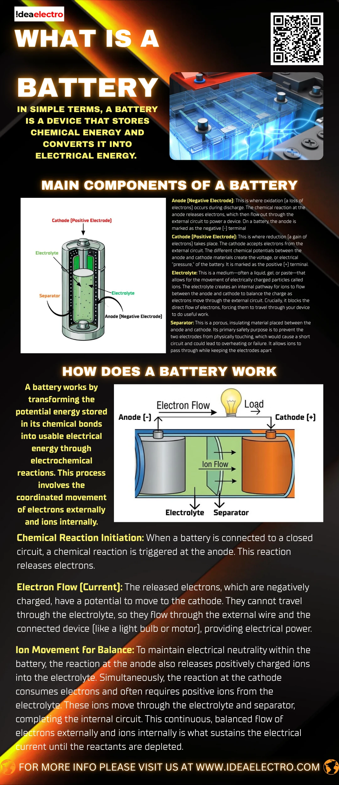 In summary, a battery is an electrochemical device that stores chemical energy and converts it into electrical energy on demand through controlled internal reactions. Its core components—the anode, cathode, electrolyte, and separator—work in concert to generate a flow of electrons that can power everything from tiny earpieces to electric cars. As the enabling technology for portable electronics, clean transportation, and renewable energy integration, batteries are a cornerstone of modern electrical engineering. Ongoing research continues to focus on improving their capacity, safety, sustainability, and cost, ensuring they will remain vital to technological progress.