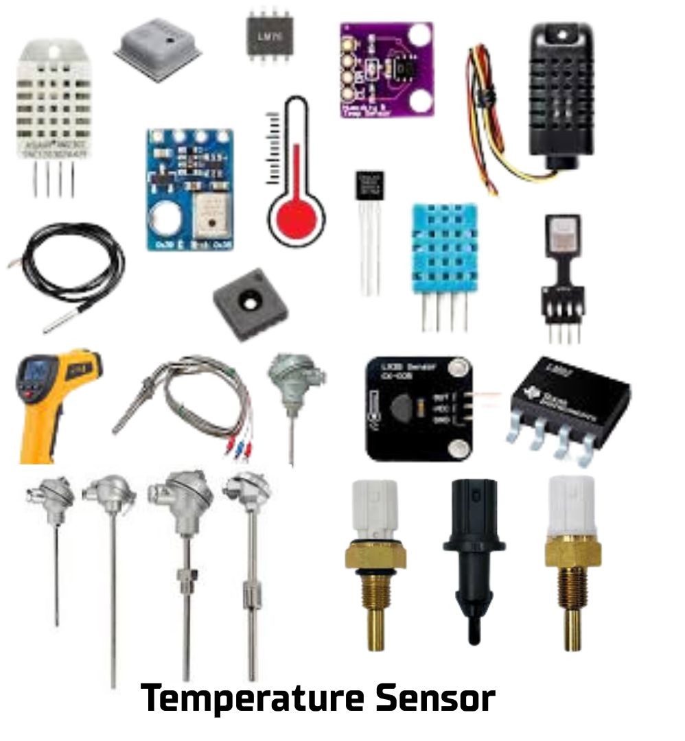 | Temperature Sensor | Heat (Temperature) | Climate control systems (AC, heaters), industrial ovens, weather stations, consumer electronics.