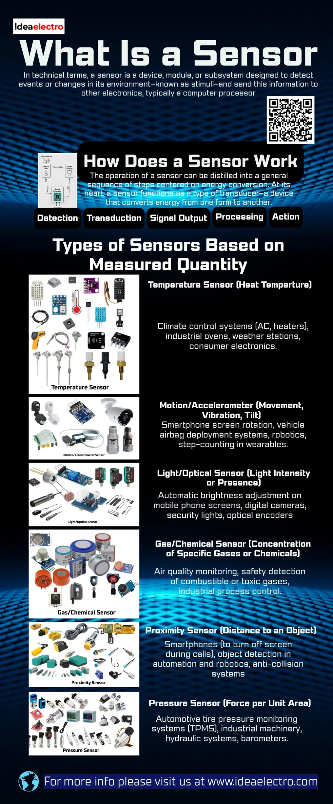 In technical terms, a sensor is a device, module, or subsystem designed to detect events or changes in its environment—known as stimuli—and send this information to other electronics, typically a computer processor. The core function involves measuring a physical quantity (the input), such as temperature, pressure, light, or motion, and converting it into a readable or usable electrical signal (the output). This process allows physical phenomena to be quantified, monitored, and acted upon by electronic circuits. Whether it’s a thermostat gauging room temperature or a camera capturing light, the sensor serves as the critical first point of contact, transforming real-world conditions into a language that machines can understand and process. Sensors play a vital role in modern life, from smartphone alarms and automatic car braking systems to homes that adjust temperature automatically. These devices act as a bridge between the physical world and digital technology by continuously detecting changes such as light, heat, motion, or pressure. A sensor is technically defined as a device or subsystem that detects environmental stimuli and converts physical quantities into usable electrical signals. This conversion allows electronic systems to measure, monitor, and respond to real-world conditions. Whether in thermostats, cameras, or smart devices, sensors enable automation, improve safety, and enhance efficiency across countless applications.